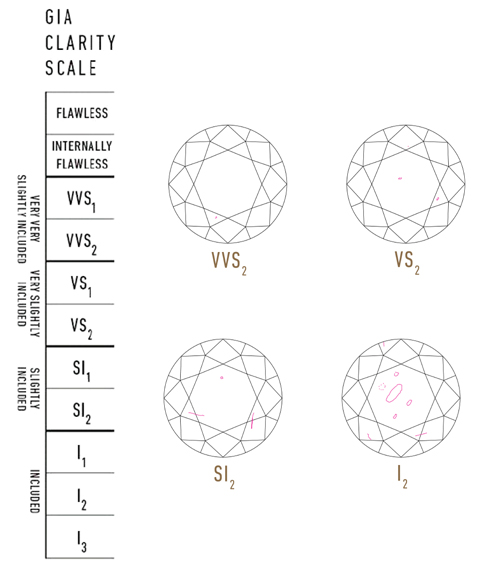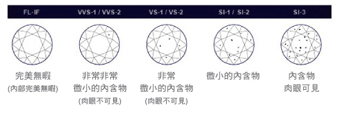 GIA 對鑽石淨度標準分成6 種類別,11 種等級